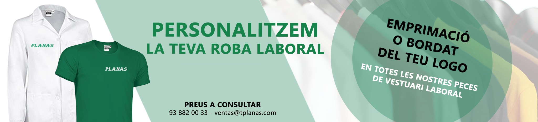 PLANAS ofereix un servei d'imprimació o brodat del logotip de la teva empresa a qualsevol producte de vestuari laboral (preus a consultar).