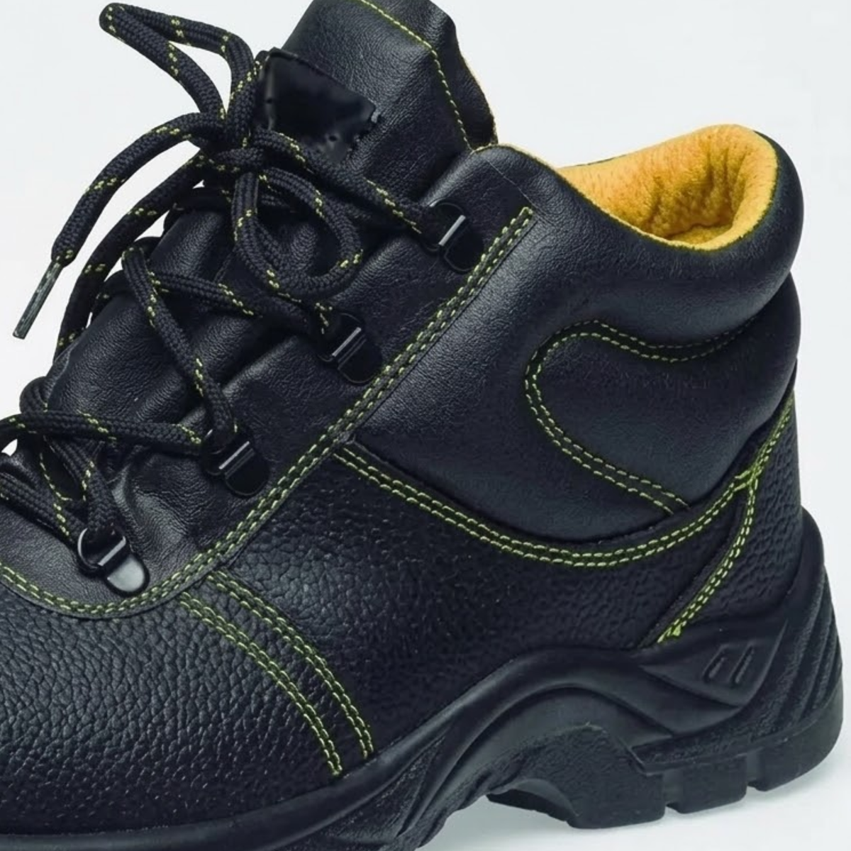 Bota S1P de pell flor amb teixit de doble cos, puntera de protecció, sola anti-perforació i anti-estàtica. Ús recomanat per a indústria agraria, metall o mecánica, agricultura, magatzems, manteniment, grúes, etc. Normativa: EN ISO 20345:2011