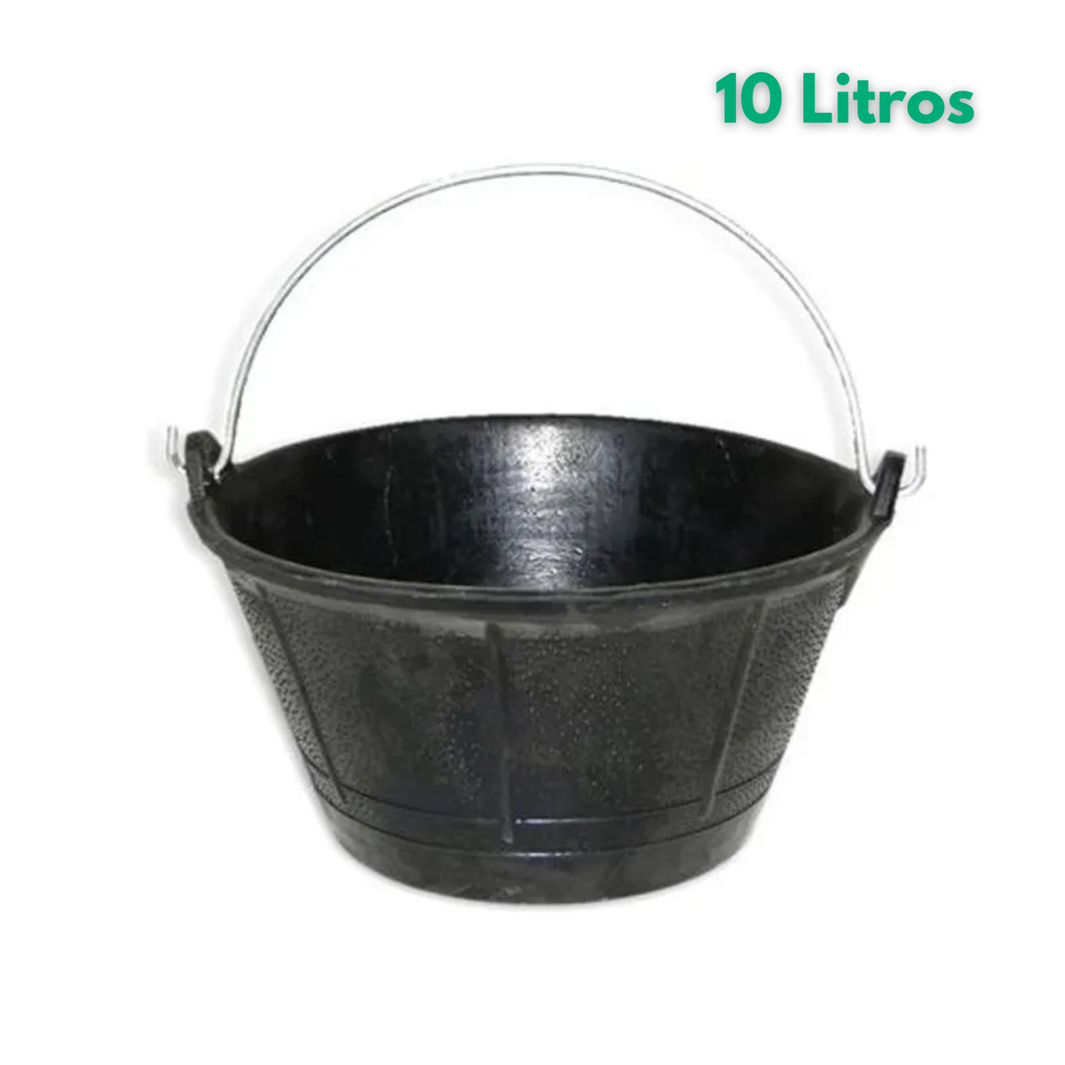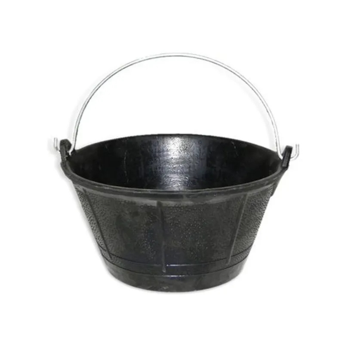 Calderetes de goma amb nansa metàl·lica de 10 litres. Calderetes negres que al ser de goma resisteixen molt més a cops, doblades... fruit dels treballs en la construcció i obres. Compra mínima 10 calderetes de 10 litres.