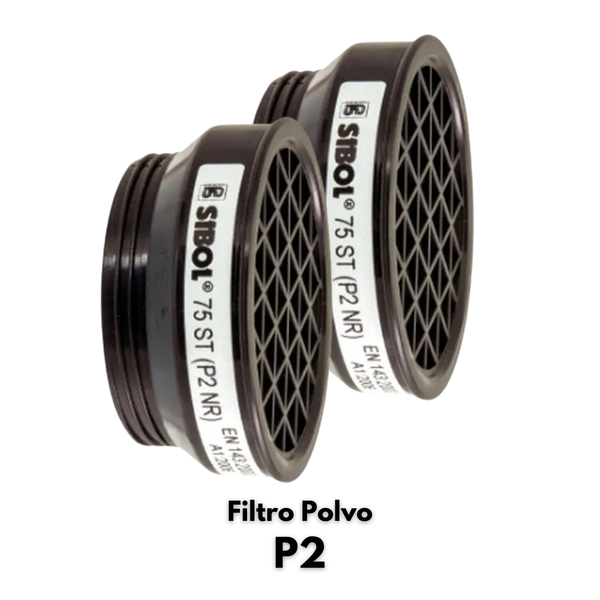 Filtres respiratoris 75 ST P2 per la Máscara Respir II. Filtre contra pols, fums i boirina, clase P2 R.“R”: Filtre reutilitzable (més d'un torn de treball)Normativa: EN 143Venta unitària.