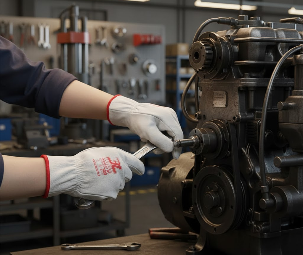Guant de treball amb pell flor de qualitat mitjana alta, amb un gruix aproximat de 0.8-1.0 mm.